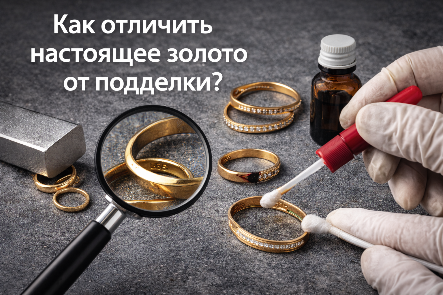 Подделки под золото встречаются и среди бижутерии, и среди изделий с позолотой, поэтому перед покупкой или продажей полезно уметь сделать базовую проверку. Важно понимать: домашние методы дают лишь предварительный вывод, а точную пробу и подлинность подтверждает экспертная оценка. Ниже — простые способы, которые помогают отличать настоящее золото от поддельного металла и вовремя заметить сомнительное изделие.